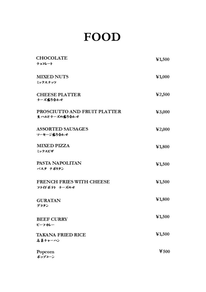 多彩なアルコールとお酒に合うフードをご用意しています。